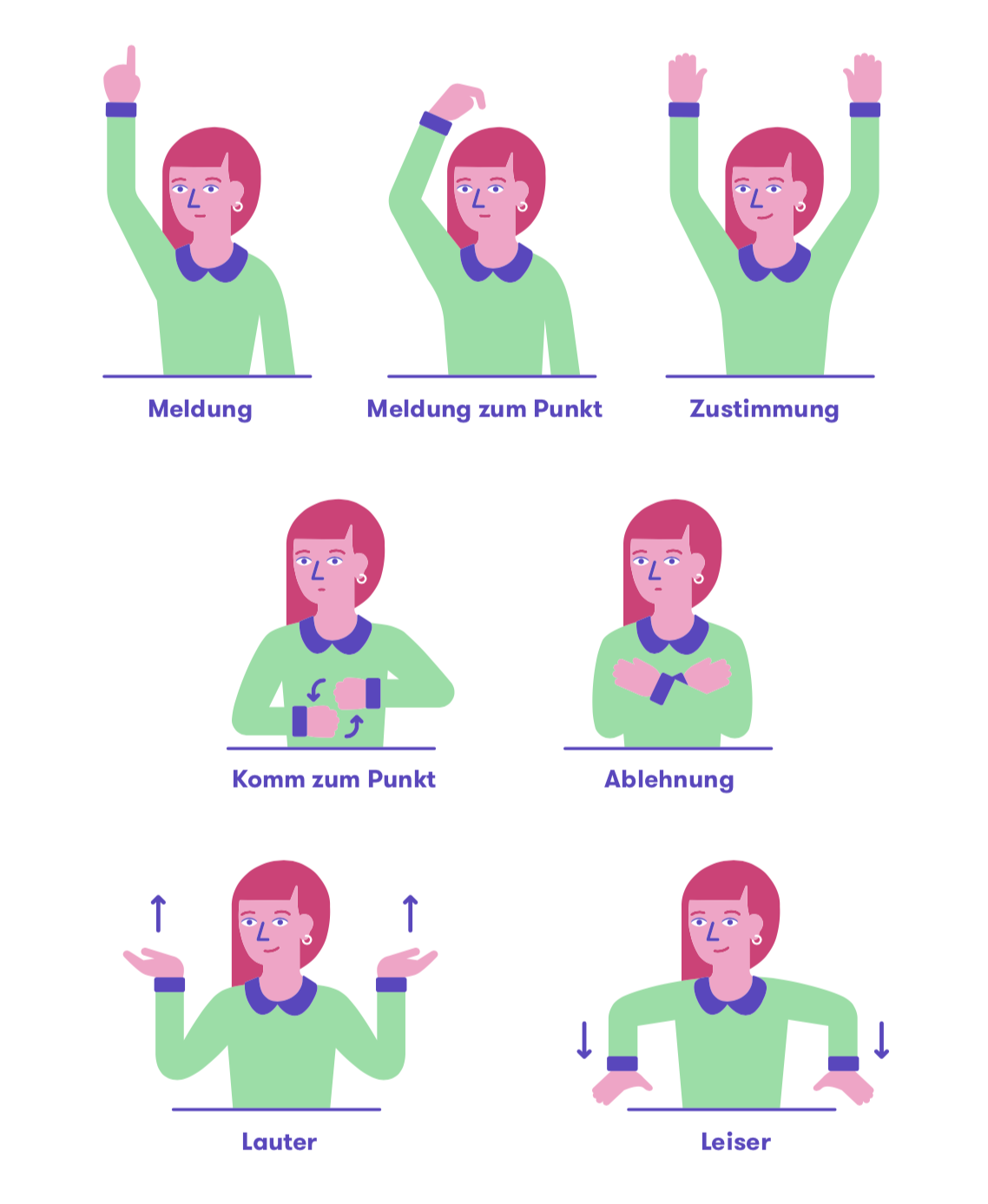 «Zustimmung» «Ich hab eine Idee.» «Stopp»