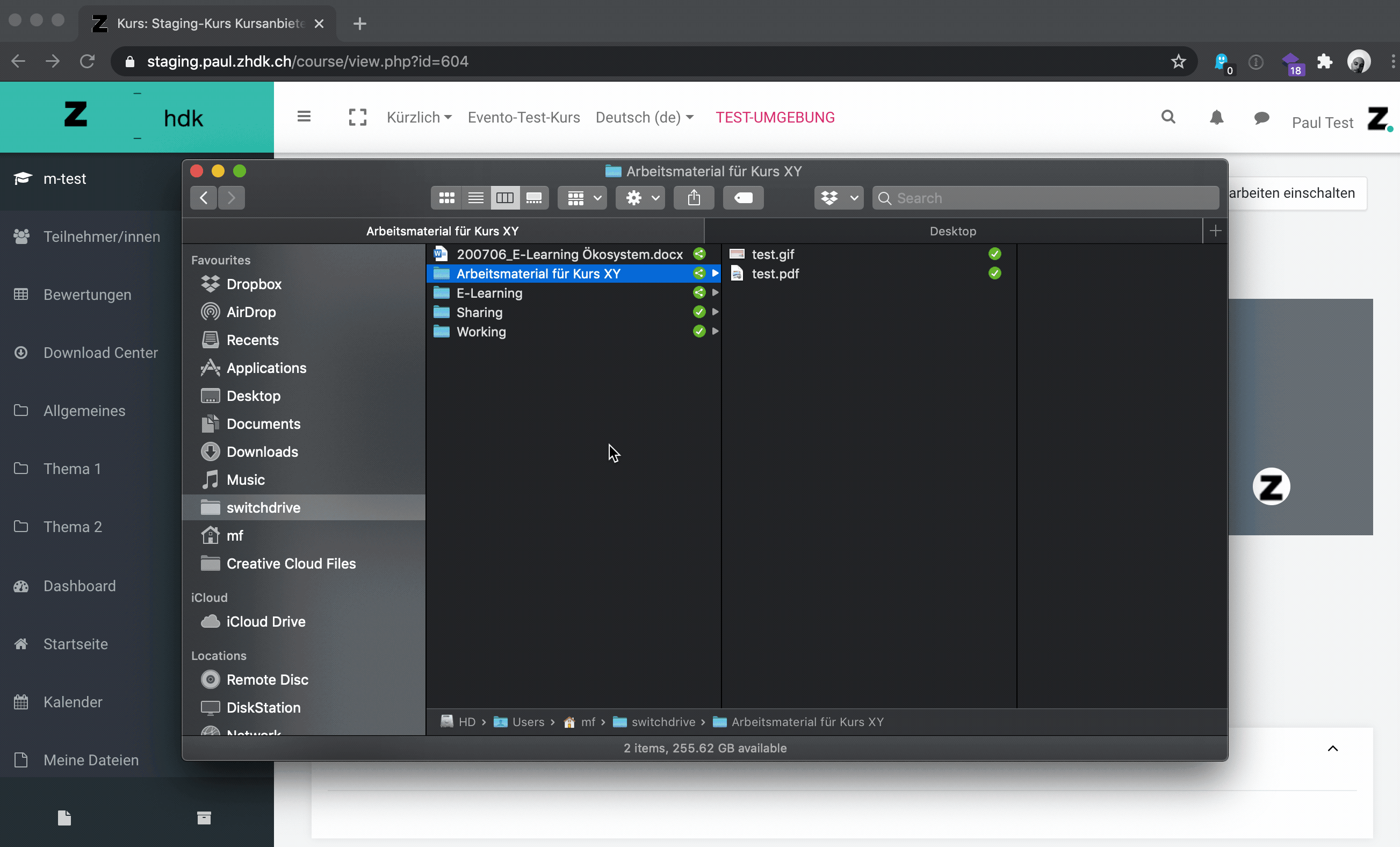 | Antwort: Bei grossen Dateimengen (z.B. Video- oder Audiomaterial) ist es sinnvoll, die Daten in dein SWITCHdrive oder OneDrive auszulagern und dann mit deinem PAUL-Kurs zu verknüpfen. Du kannst nämlich auf Cloud-Dateien referenzieren, ohne die Inhalte erneut in den PAUL-Kurs hochladen zu müssen. So kannst du auch wiederkehrendes Arbeitsmaterial schnell in neue Kurse einbinden. So geht's: Mit SWITCHdrive: