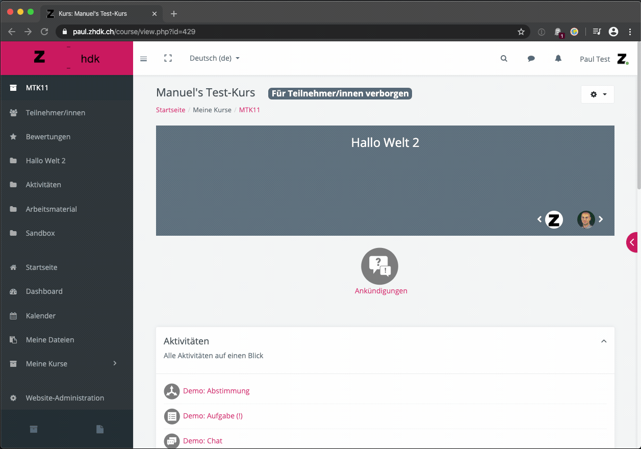 | Antwort: Paul bietet verschiedene Rollen an. Diese können als Kursanbietende/r jederzeit geändert werden.