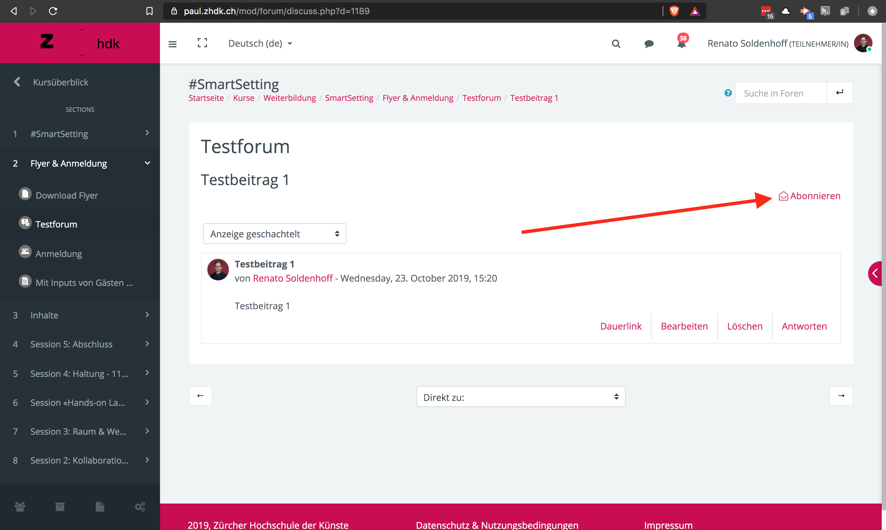 | Antwort: Teilnehmende können bei Standardeinstellungen eine Forum oder einzelne Beiträge abonnieren respektive abbestellen. Forum abonnieren resp. abbestellen: