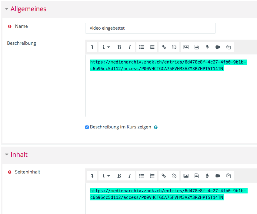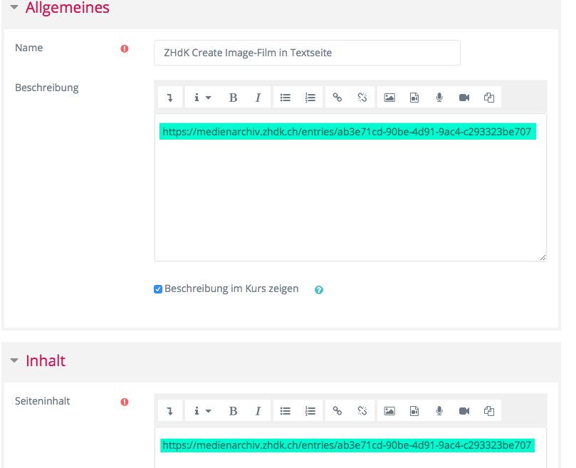 Frage: (Zuletzt bearbeitet: Mittwoch, 27. Juni 2018, 12:44)Wie kann ich Videos von Nanoo, Vimeo oder Youtube in meinen Kurs einfügen? | ||||
