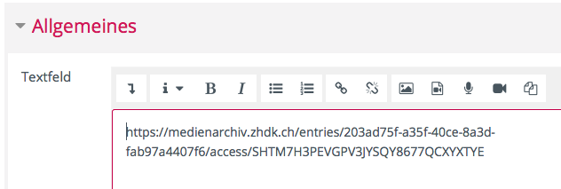 5. Nichtöffentliche Videos aus dem Medienarchiv in PAUL einbetten in Arbeitsmaterial «Textfeld»