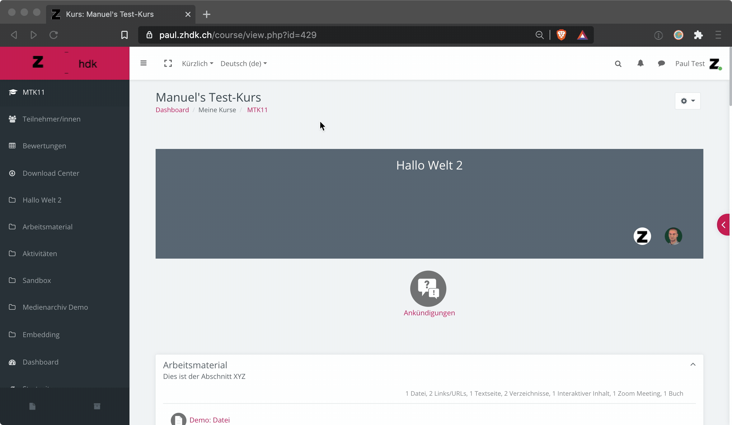 Nun wurde innerhalb deines Paul-Kurses ein Videomeeting erstellt. Darauf befindet sich der Zugangs-Link für die Videokonferenz. Demo