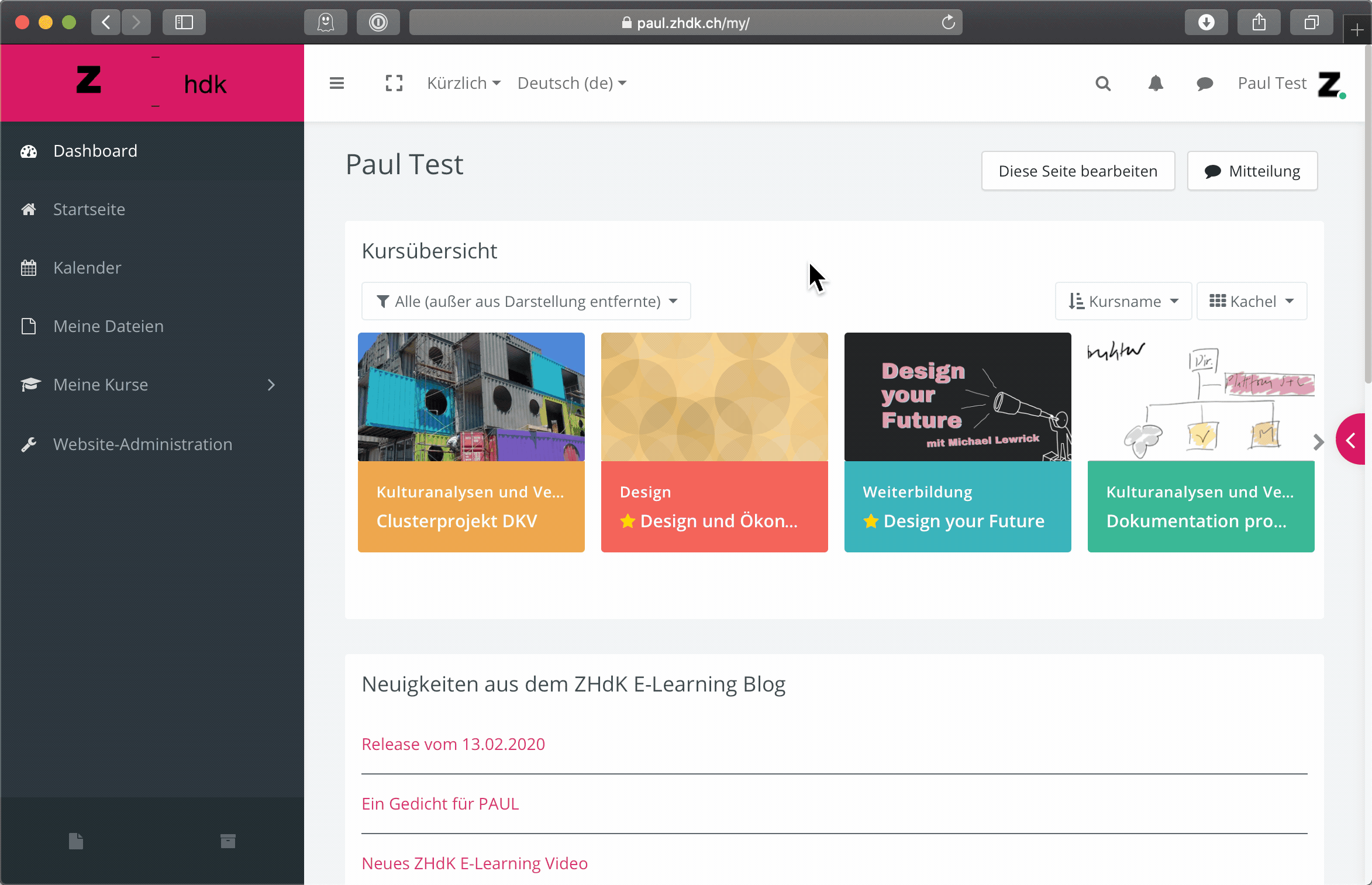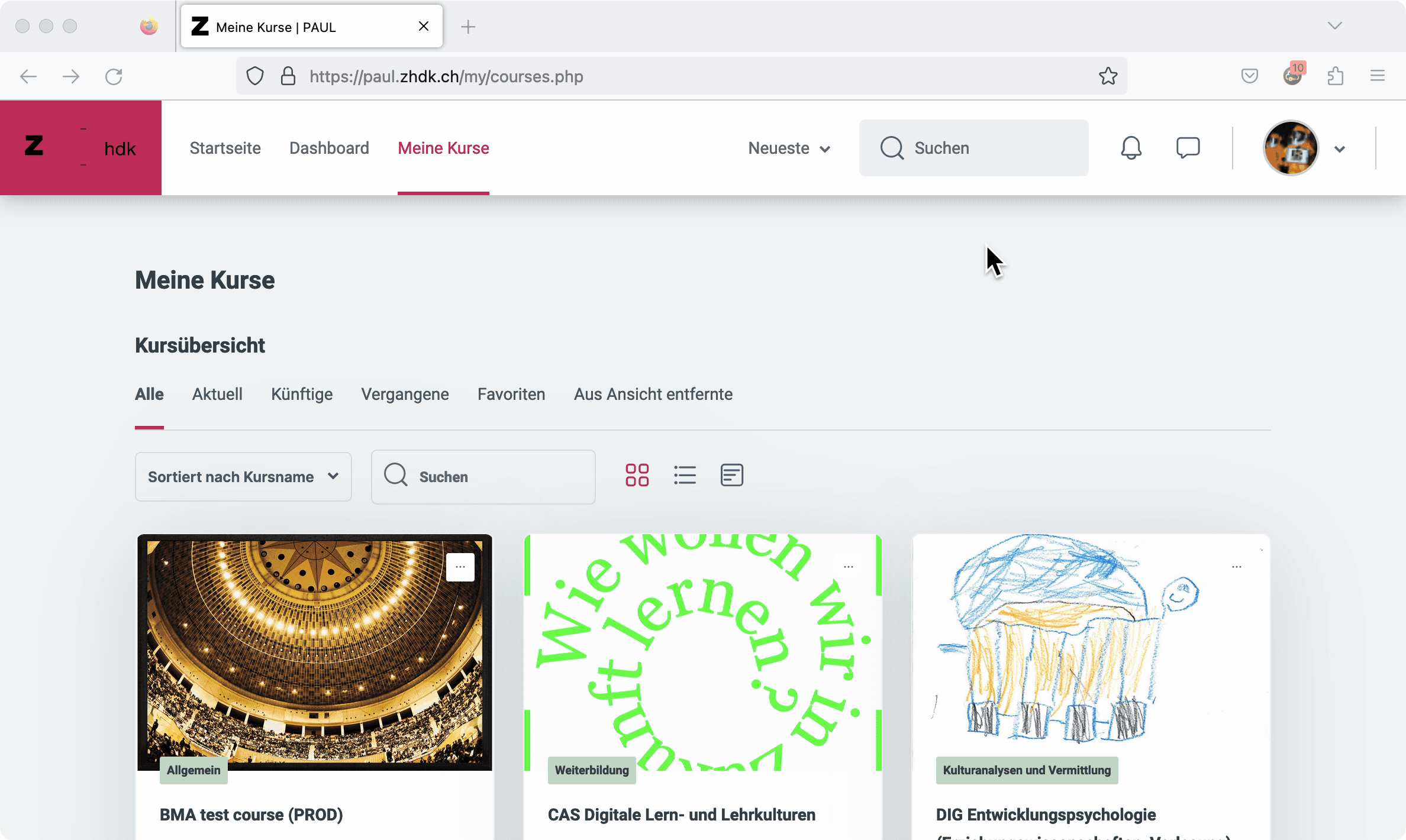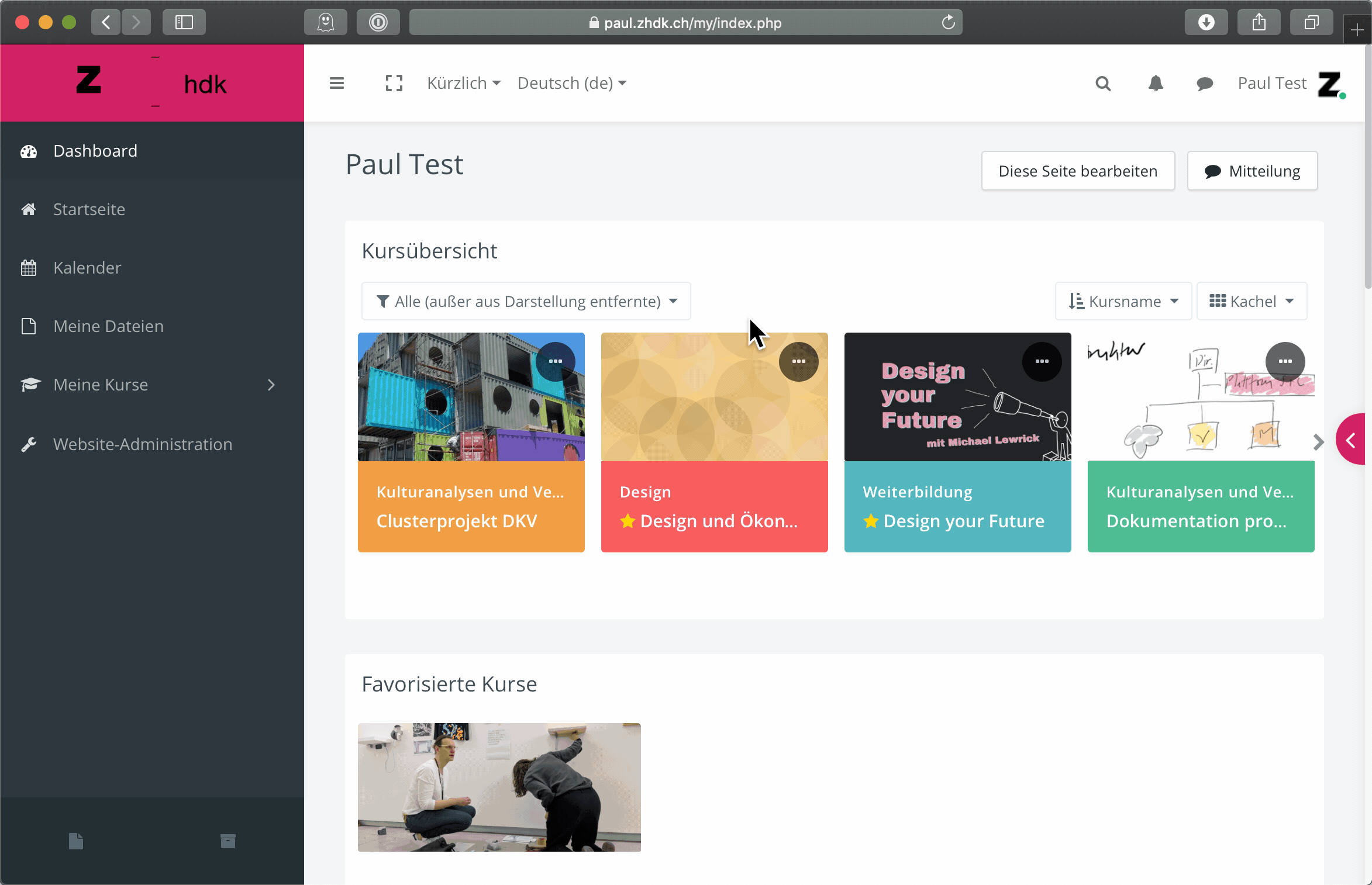 | Antwort: PAUL ermöglicht es, einzelne Kurse zu favorisieren und explizit nur diese im eigenen Dashboard anzeigen zu lassen.