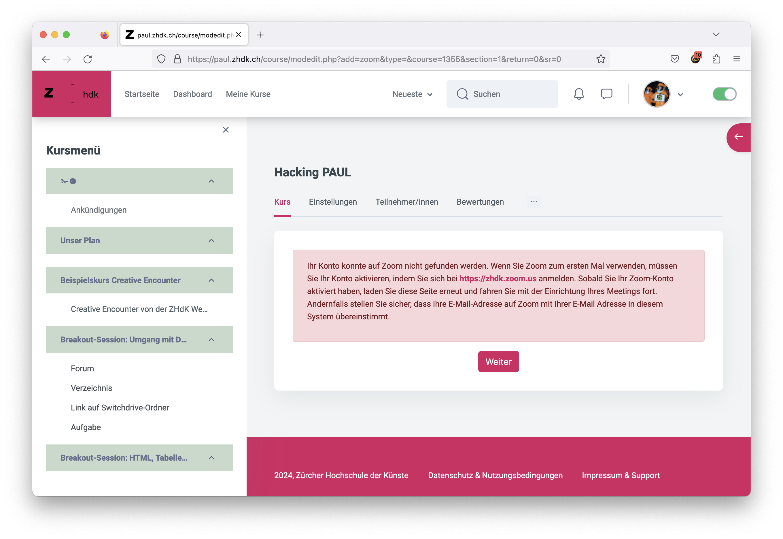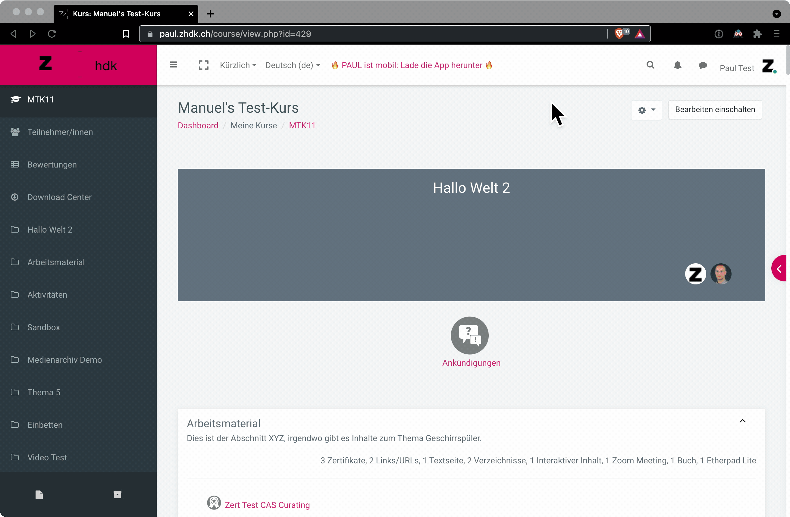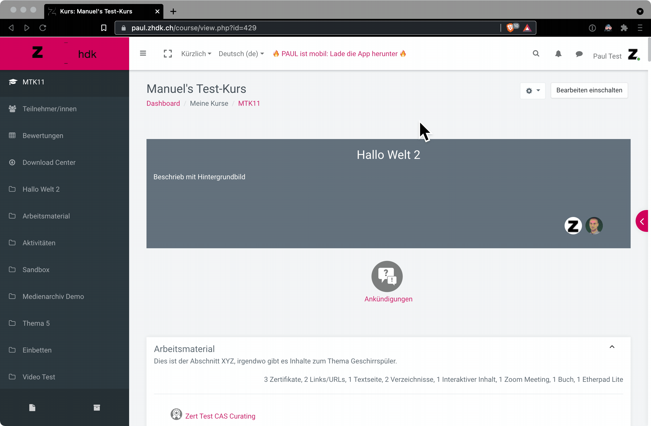 | Antwort: Falls der PAUL-Kurs noch nicht existiert, eröffne ihn über Meine Lehrveranstaltungen: